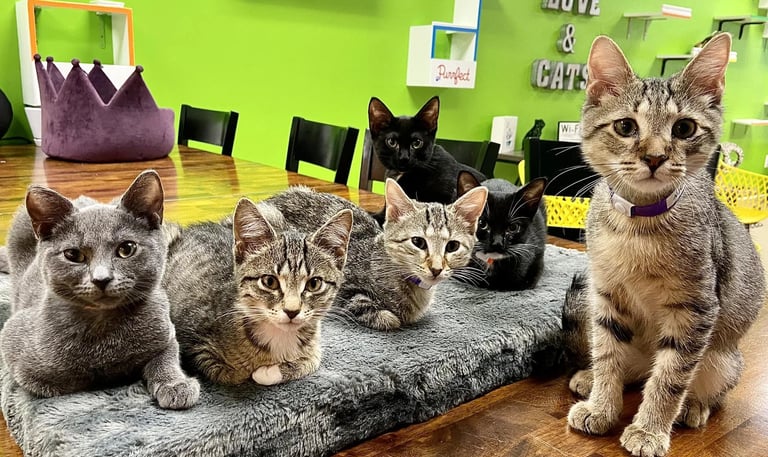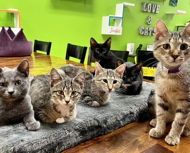 Patriot Pawsabilities fosters a number of our cats in the cat lounge where they improve their social skills with other cats and humans. If you fall in love with one of our cats at the Cat Lounge, they will connect you with us to begin the adoption process.